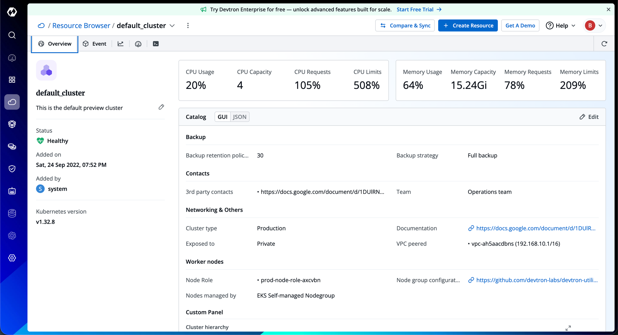 With Devtron accelerates delivery and deployments, it also helps you decide and prioritize business goals faster. Devtron will not just help get CI/CD to Kubernetes but also helps you understand infrastructure rigged on Kubernetes, giving you complete visibility of the Kubernetes in terms of CPU, Memory, and performance.