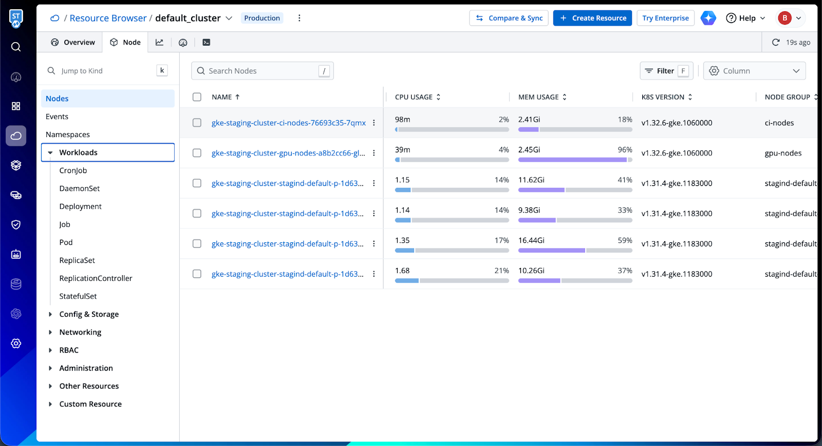 One view across all clusters: dev, staging, production, and regional deployments. See deployment health, resource usage, and costs without switching contexts or running kubectl config use-context for the fifth time. No more "wait, did I just run that in prod?"