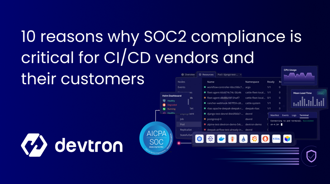 Devtron is now Soc2 Compliant! By achieving SOC 2 compliance, Devtron has established a robust security framework that not only meets industry standards but also enhances trust with its customers. This commitment to security ensures that Devtron's CI/CD services are reliable, secure and resilient against potential exploits and threats.