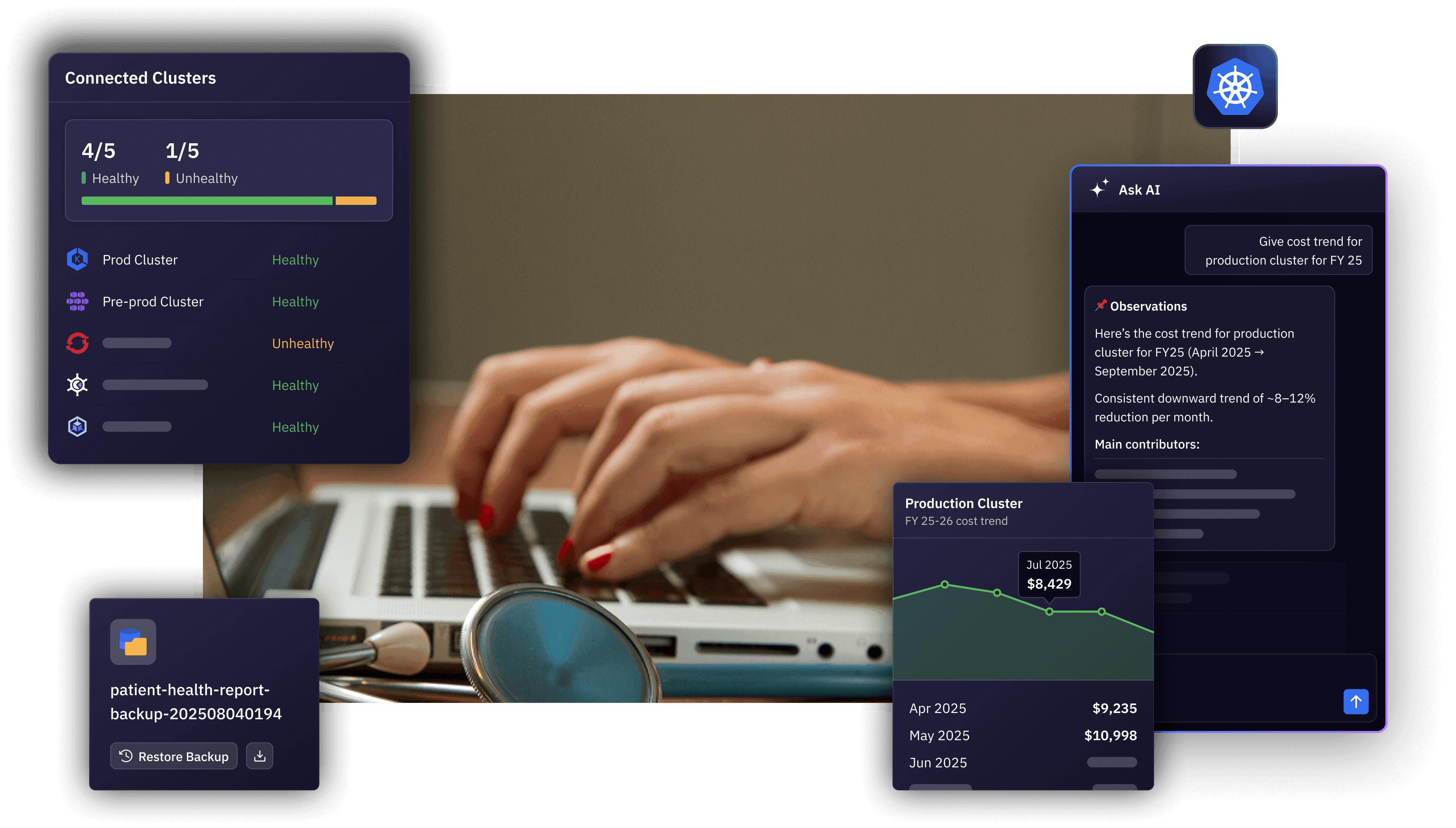 Every minute of downtime isn't just lost revenue—it's delayed diagnoses, postponed surgeries, and frustrated medical staff who can't access patient records when seconds matter. Yet teams are stuck managing 15+ Kubernetes tools, constantly firefighting, and praying their disaster recovery actually works.