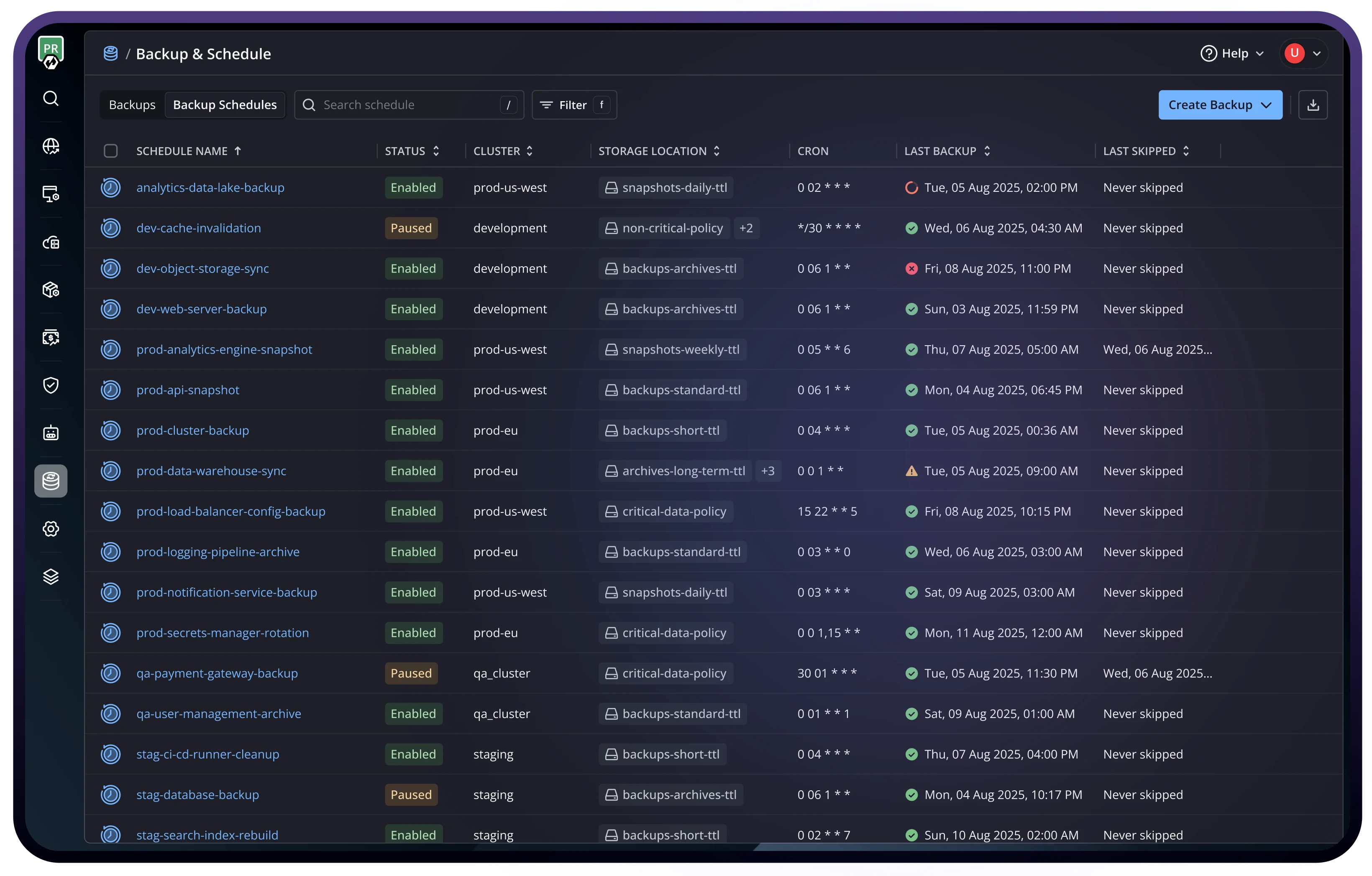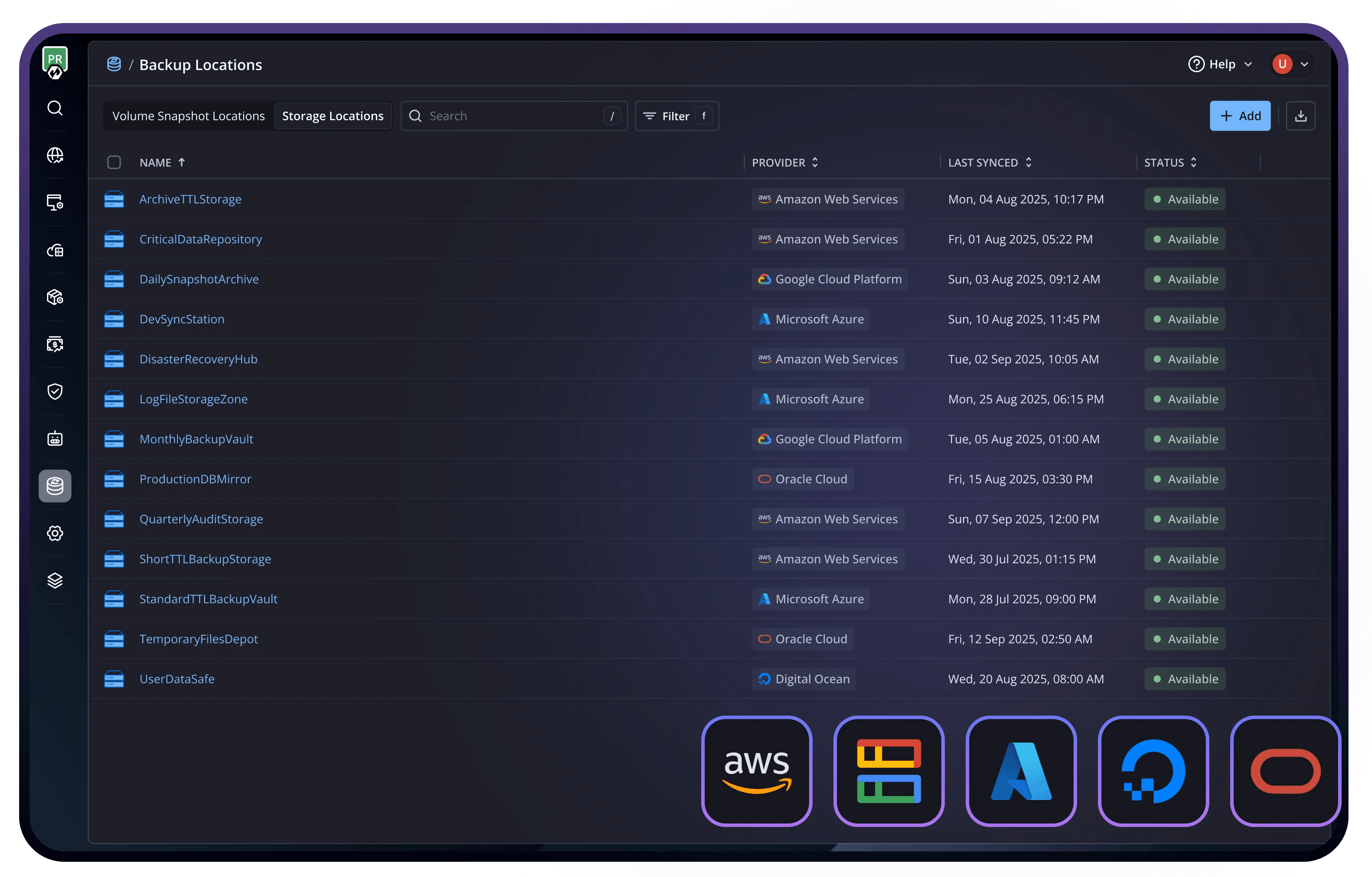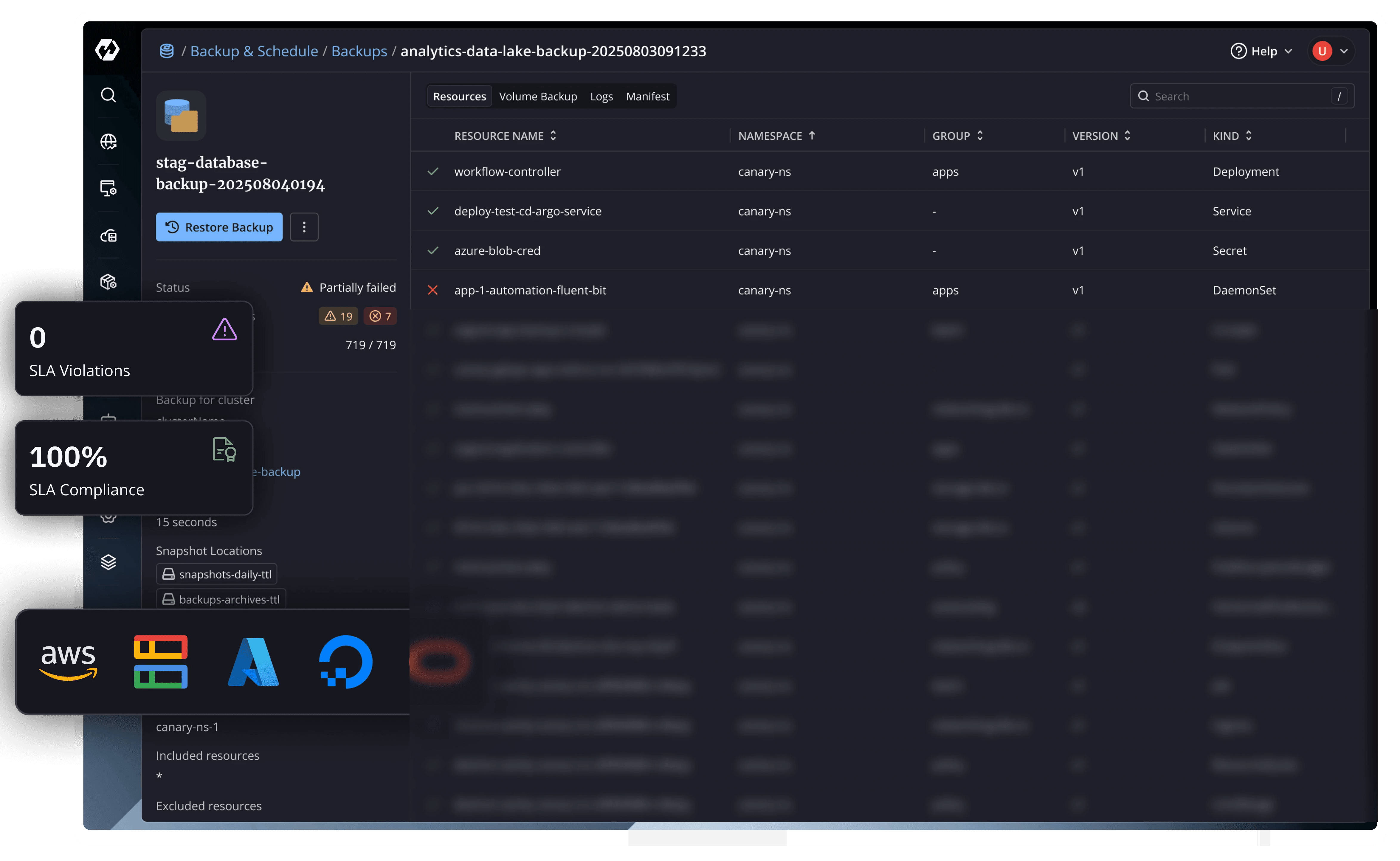 Backups work seamlessly across AWS, Azure, GCP, and on-premises.